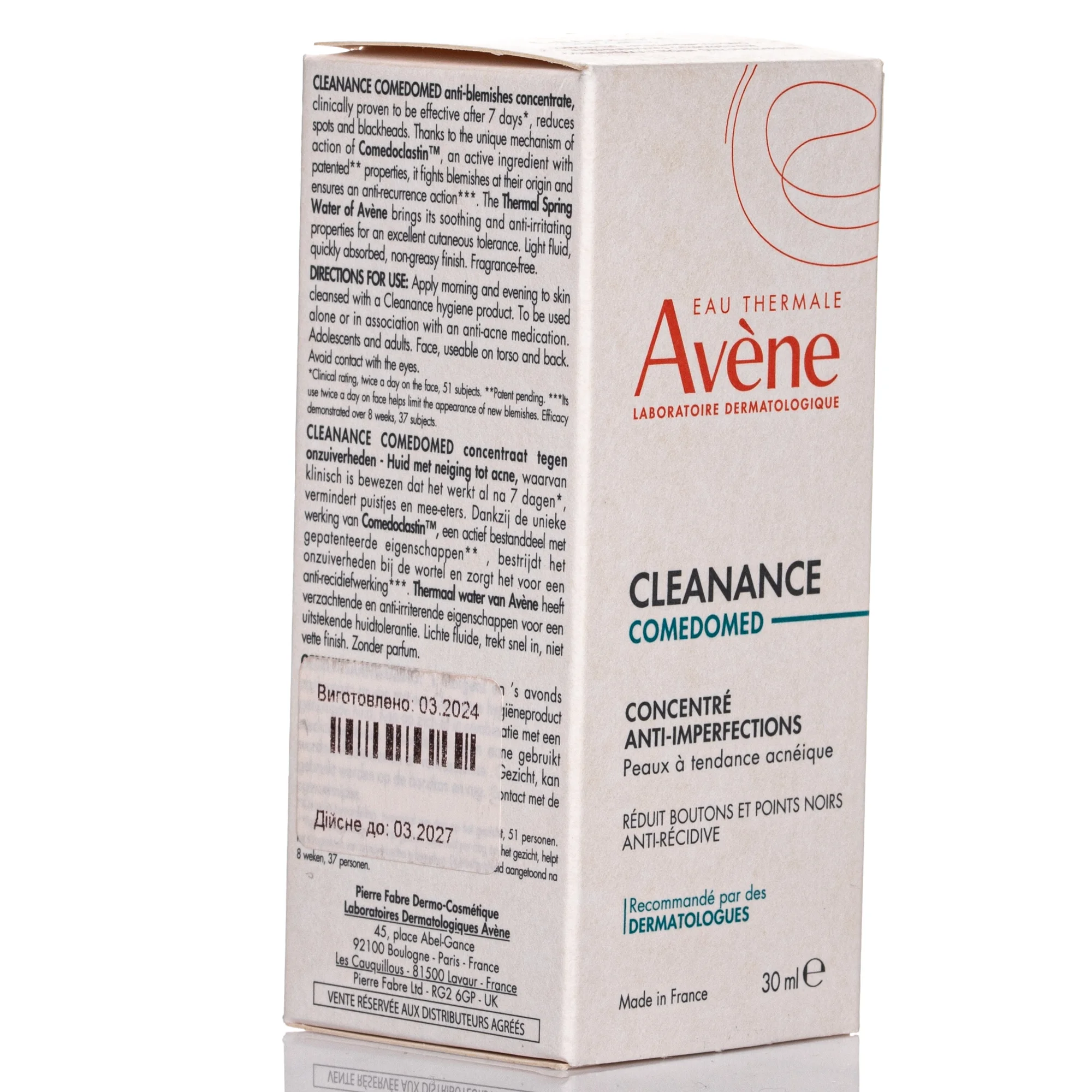 Получите AI аналитику по товару Средство против акне Avene (Авен) Cleanance Comedomed, 30 мл:
