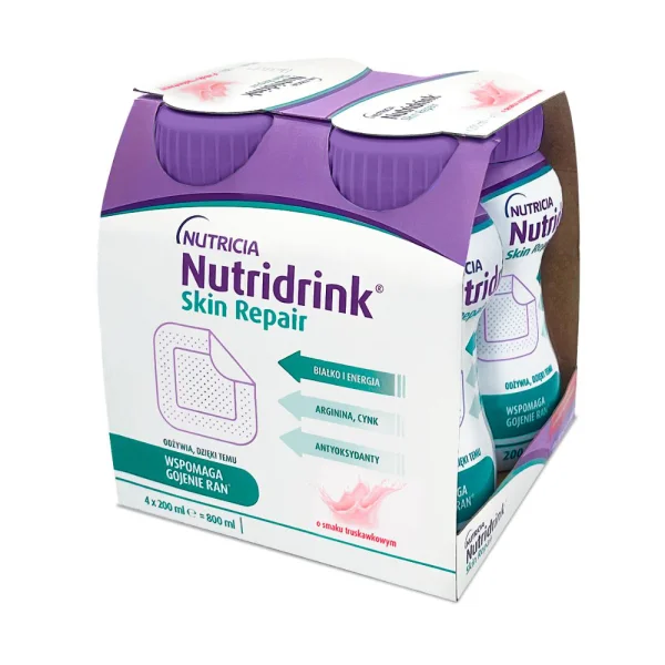 Получите AI аналитику по товару Энтеральное питание Nutridrink (Нутридринк) Skin Repair со вкусом клубники, по 200 мл во флаконе, 4 шт.: