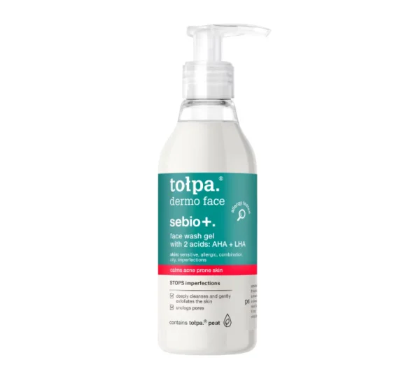 Получите AI аналитику по товару Гель для умывания Tolpa (Толпа) Dermo Face Sebio+ с 2 кислотами AHA + LHA, 195 мл: