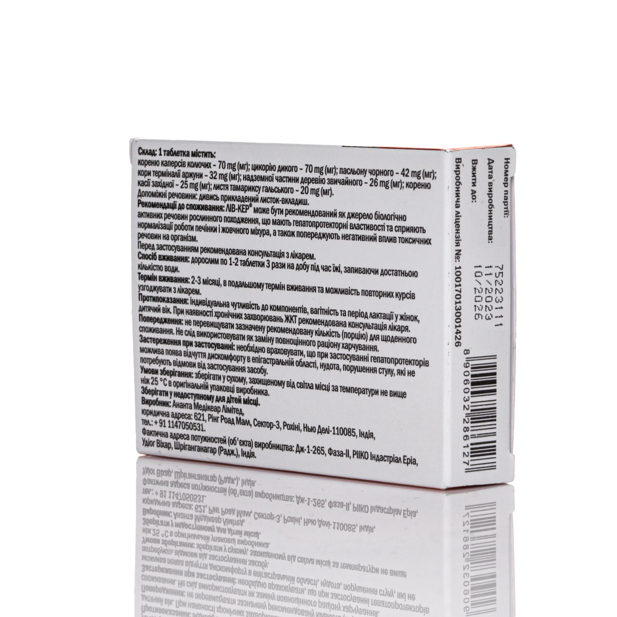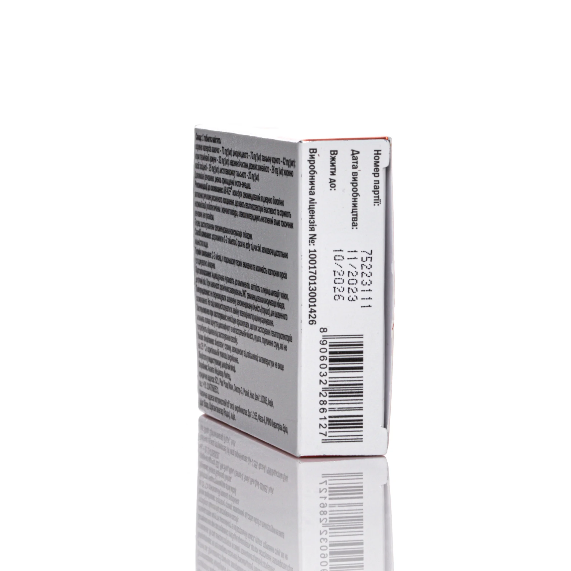 Состав: 1 таблетка содержит: – корня каперсов колючих – 70 мг (mg); – цикория дикого – 70 мг (mg); – паслена черного – 42 мг (mg); – коры терминалии аржуны – 32 мг (mg); – надземной части тысячелистника обыкновенного – 26 мг (mg); – корню кассии западной – 25 мг (mg); – листья тамарикса галльского – 20 мг (mg).