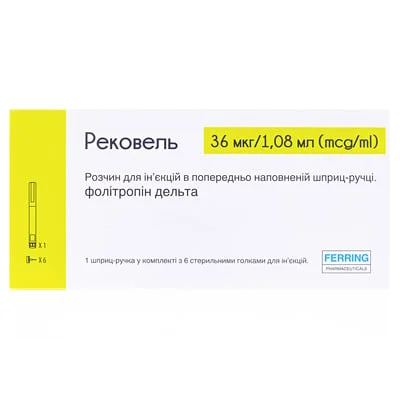 Получите AI аналитику по товару Рековель раствор для инъекций по 36 мкг/1,08 мл в картридже по 3 мл, 1 шт.: